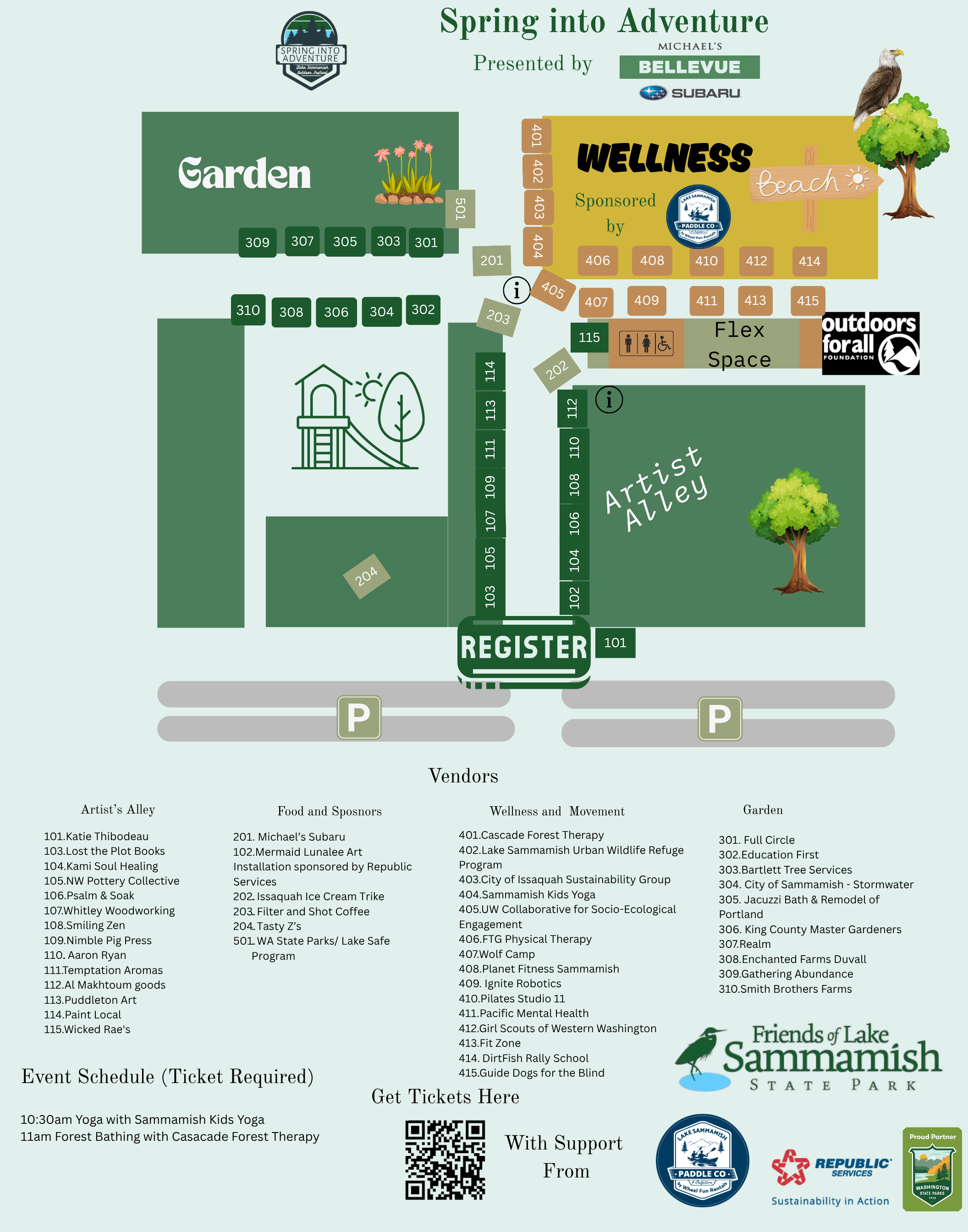 11am Forest Bathing with Casacade Forest Therapy (class size limited to 30, included in Class Pass $5 donation avaliable at Registration